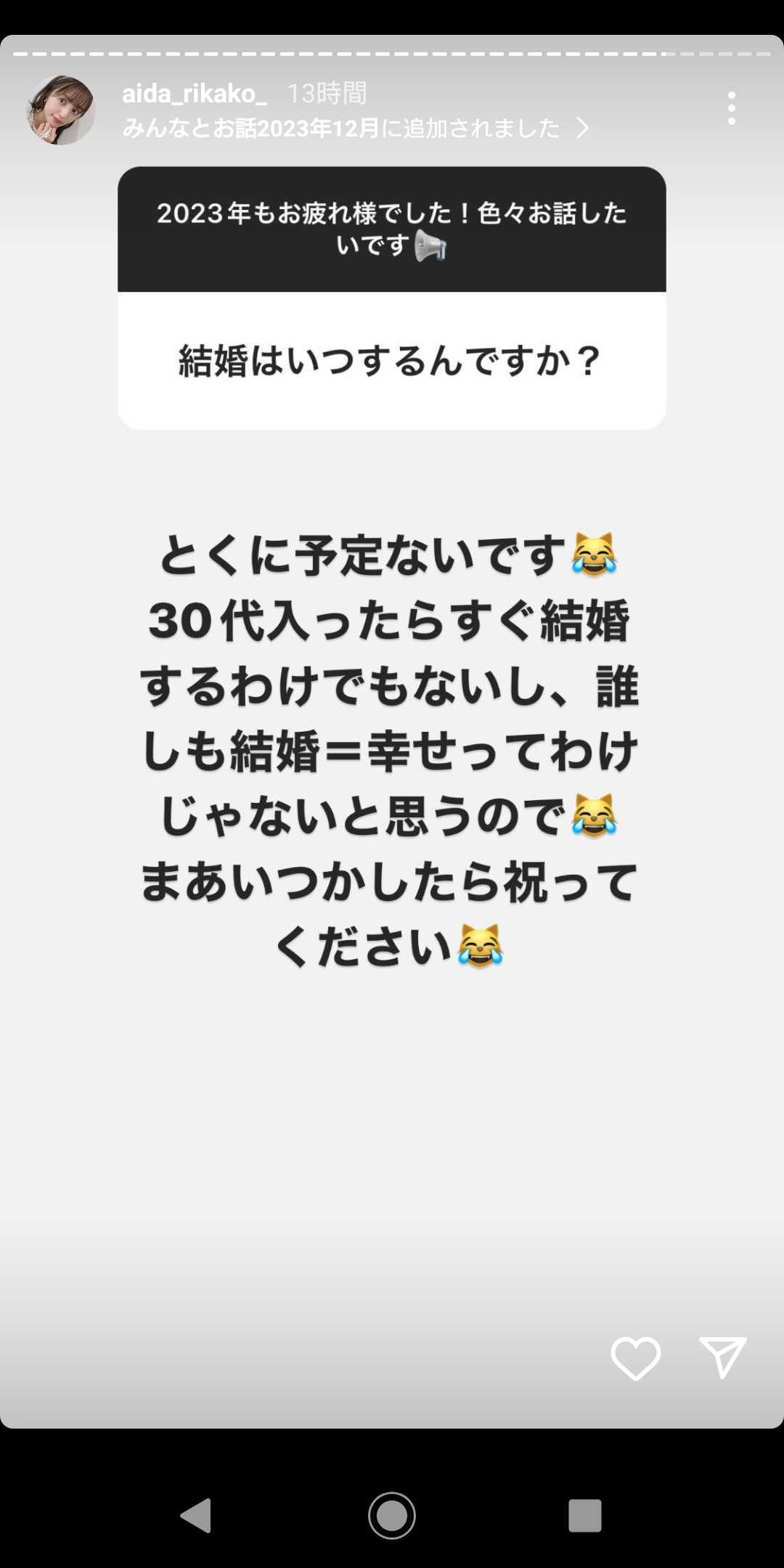 https://www.instagram.com/stories/aida_rikako_/?hl=ja4: 名無しで叶える物語(茸) 2024/01/01(月) 10:19:10.07 ID:PLiqYdu4