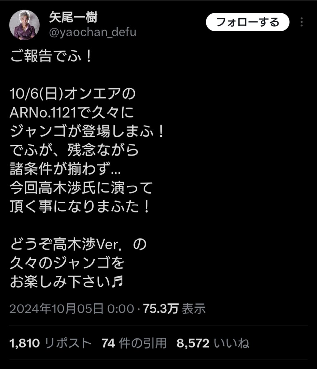 所々昔の矢尾一樹ぽいしもう後任でええやろ