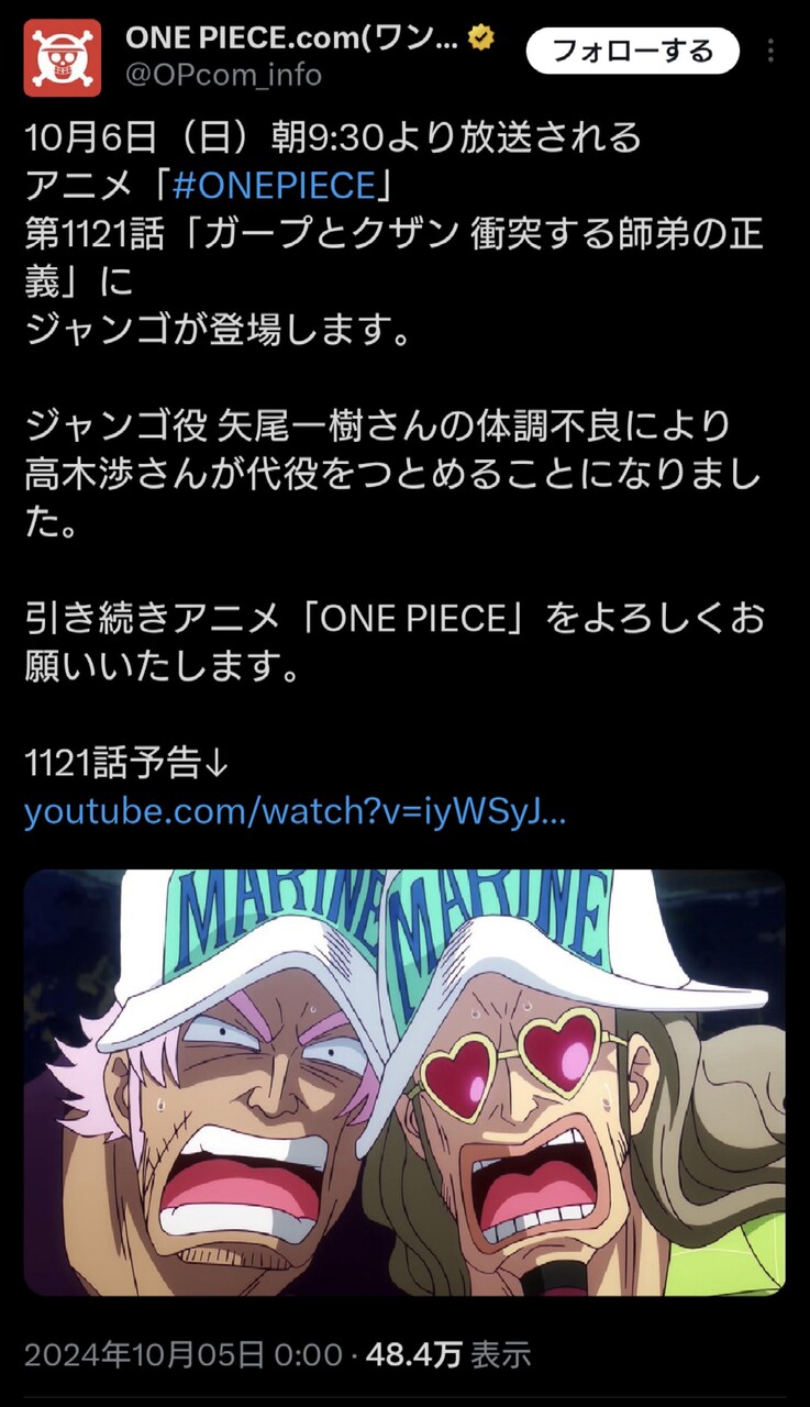 本人イメージのキャラが声変わったら割とやばいからフランキーだけは変わらんのやろ