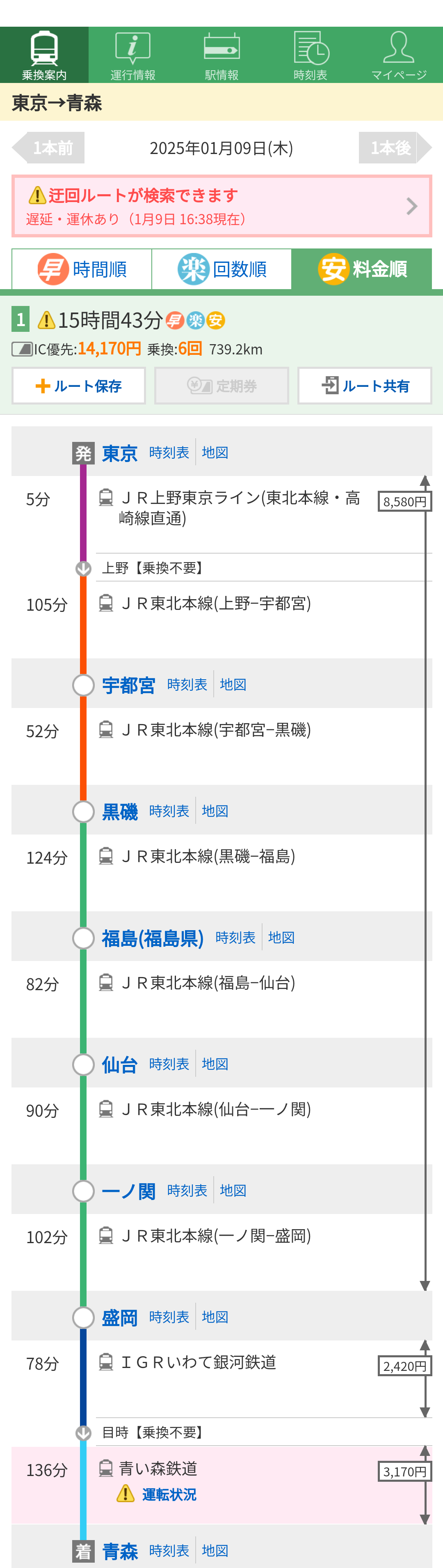 16610円は東京から八戸まで新幹線の運賃か