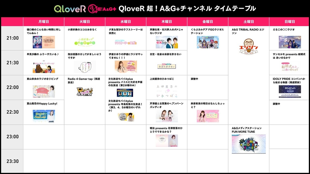 文化放送の配信プラットフォームQloveRでは毎週木曜日22時からそれぞれお届け!