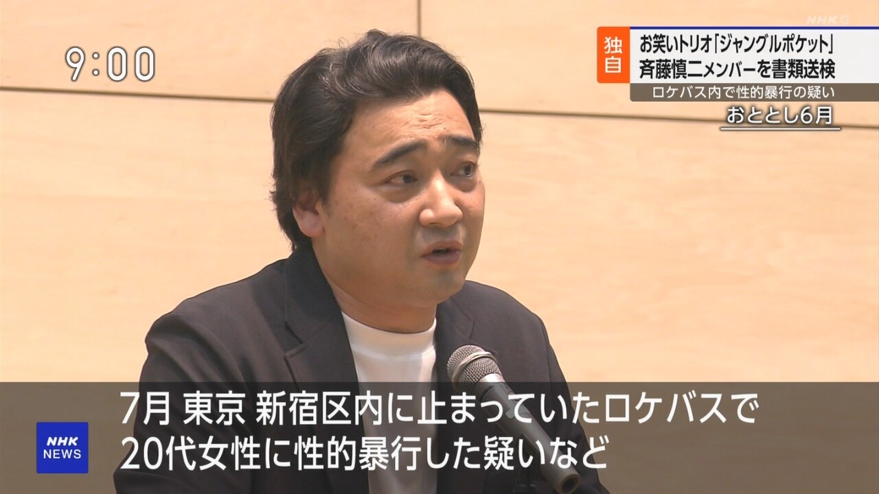 >【速報】お笑いトリオのジャンポケ斉藤慎二・元メンバーを不同意性交と不同意わいせつの罪で在宅起訴 東京地検 20代女性への性的暴行などの疑いで書類送検