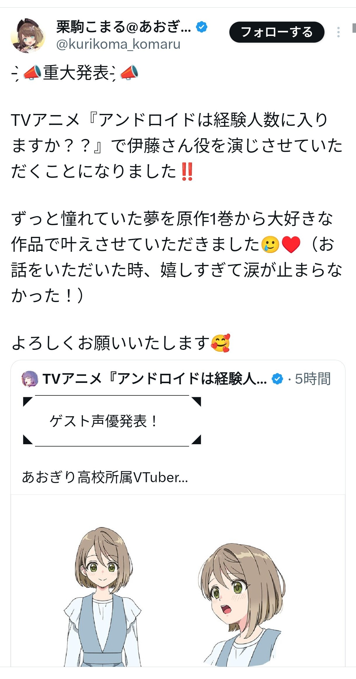 TVアニメ『アンドロイドは経験人数に入りますか??』で伊藤さん役を演じさせていただくことになりました‼️