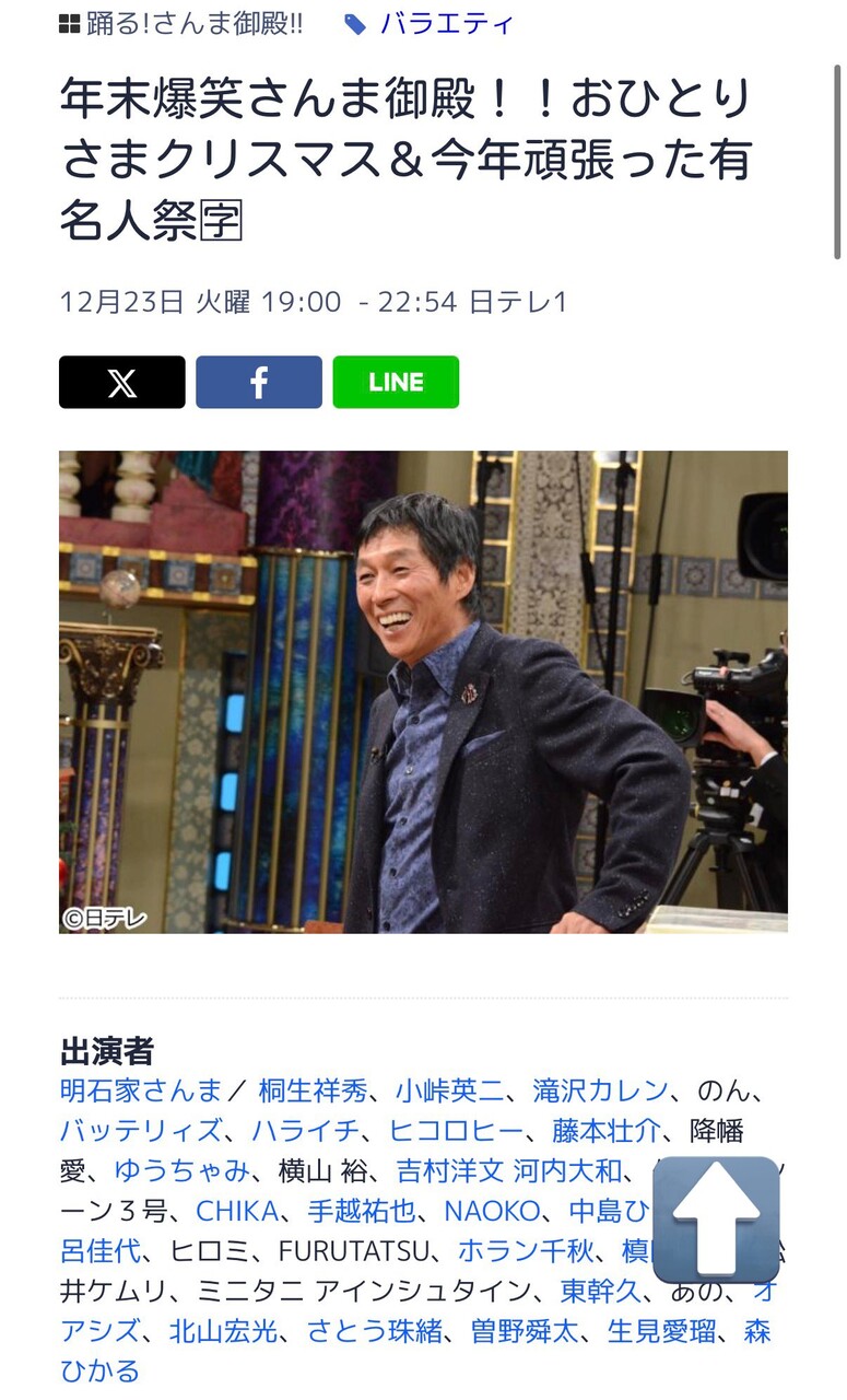 さんま御殿はゲスト交代で何回しかするから、名前の並び的に手越とは違う回かな